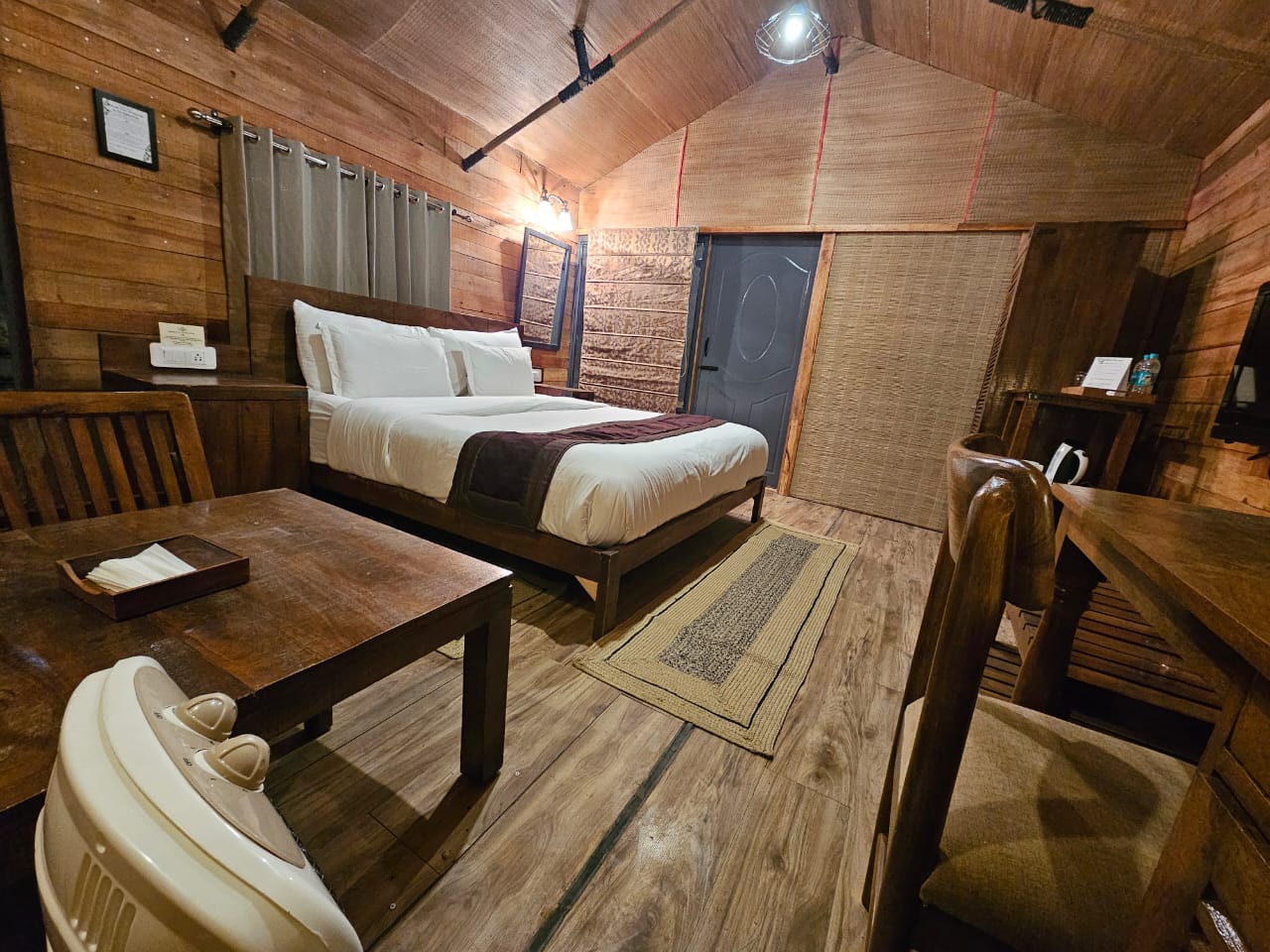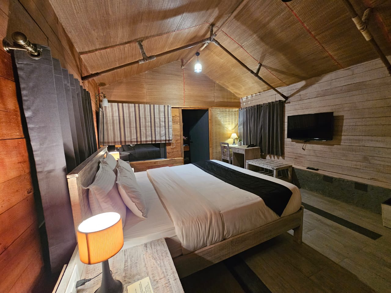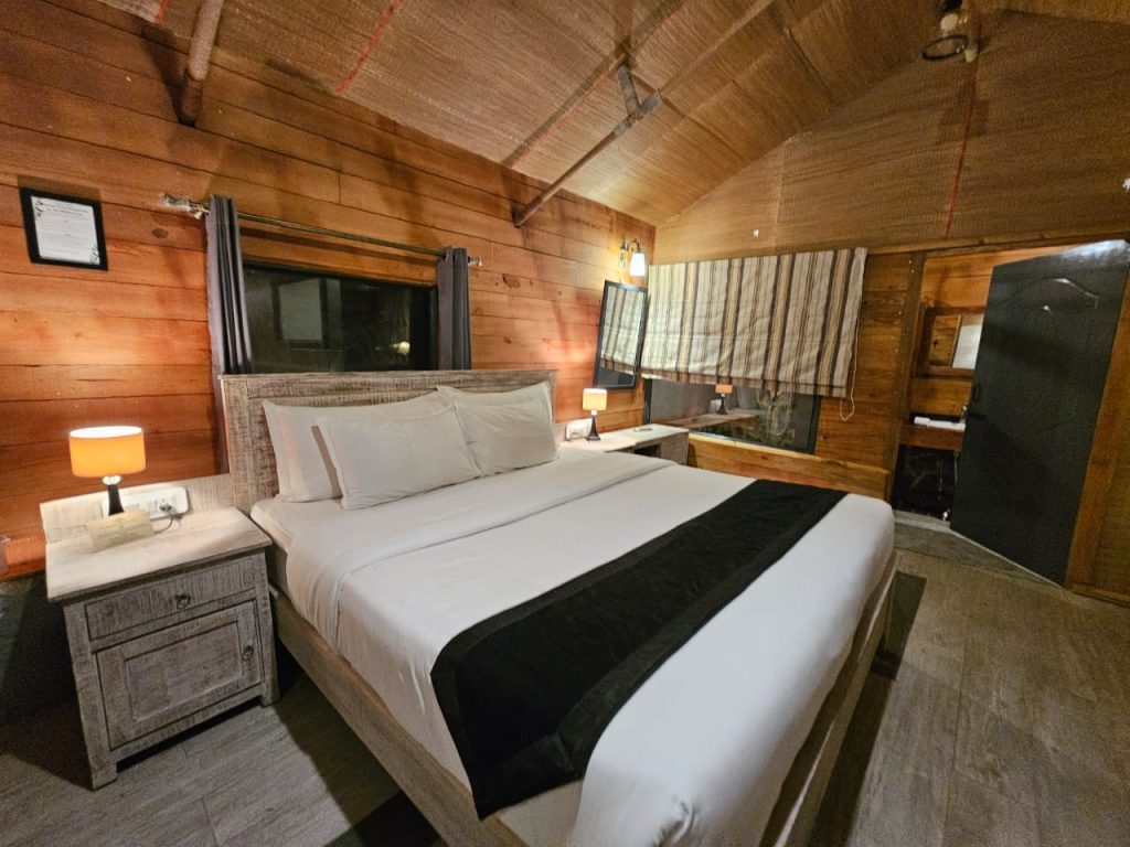 Each cabin features its own private sitting area that seamlessly extends into a shared garden and bonfire space—inviting moments of quiet solitude as well as warm, shared evenings under the open sky. Mornings unfold gently with valley views, while nights glow with soft light and stillness.